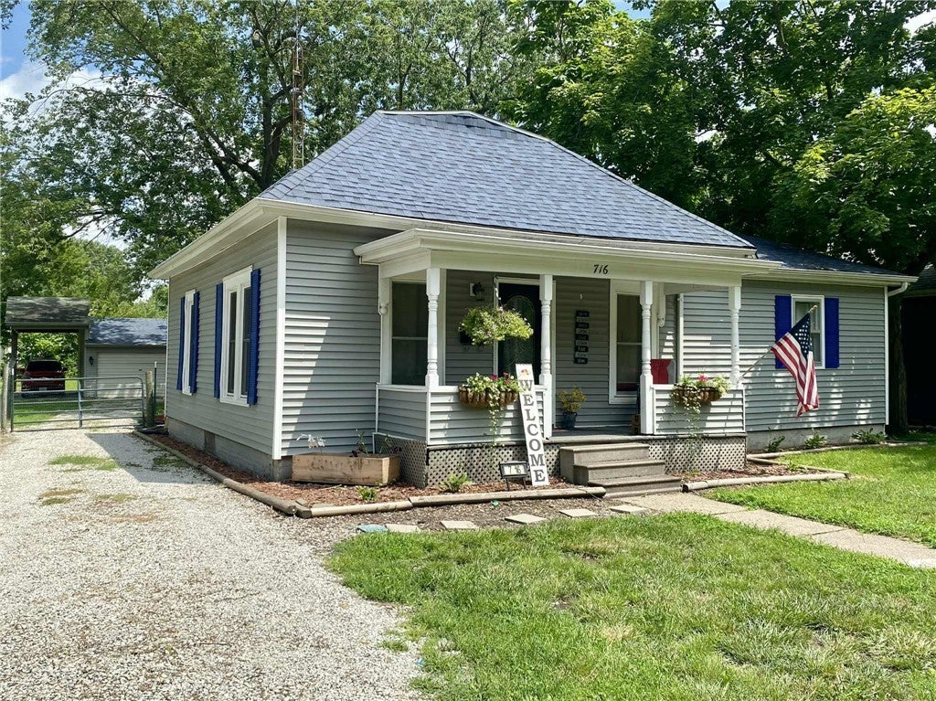 Located just steps away from Kitchell Park, sits this cozy, 3 bedroom, 2 bathroom home! On the interior, you'll find a spacious living room, dining area, kitchen, and laundry room that exits to the rear of the home. Step outside to find a screened in patio, fenced yard, quaint sitting area with a firepit and a 2 car detached garage with attached carport, tall enough for RV storage. The front of the house has new landscaping and a covered porch, where you'll have a front row seat for the Pana Labor Day Parade!! The property also features the following improvements; house and garage roofs, waterproofed crawl, bathrooms and kitchen updated, flooring throughout and newer water heater. This one won't last long, so schedule your showing today!