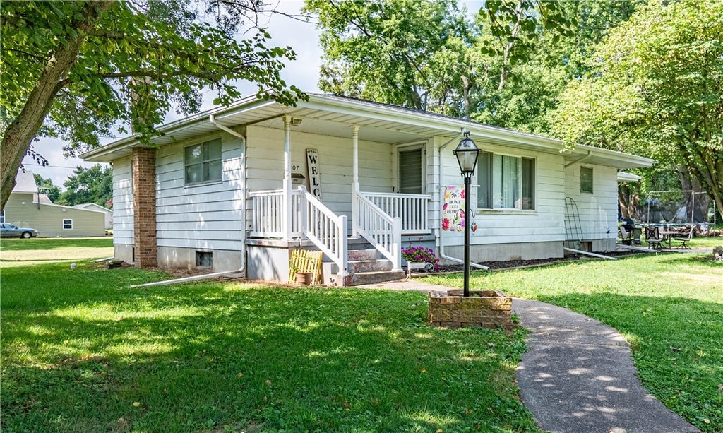 This charming home offers 4 bedrooms, an inviting eat-in kitchen, and a cozy living room perfect for relaxing evenings. The full basement provides endless possibilities—additional living space, a workshop, storage, and laundry facilities. Three of the bedrooms feature beautiful hardwood floors, and the 1-car attached garage adds convenience. Outside, the large yard is ideal for pets, kids to play, or weekend grilling and entertaining. Larger than it appears—come see all the space this home has to offer! Selling AS IS
