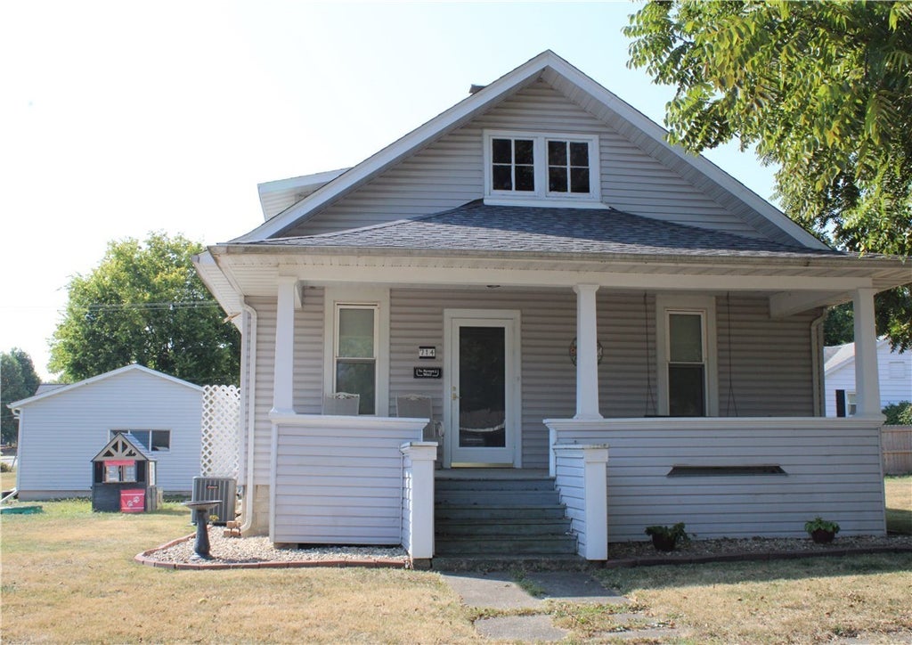 Charming 2 Bedroom Bungalow with Original Hardwood Floors & Room to Grow! Welcome to this delightful 2 bedroom, 1 bath bungalow that blends timeless charm with modern updates. Located just minutes from downtown shops and restaurants, this home offers both comfort and convenience. Step inside to find beautiful original hardwood floors that flow through the spacious living room, formal dining room, and both bedrooms. The large kitchen has been tastefully updated over the years and features ample counter space, a generous walk-in pantry, and appliances will stay! The home offers excellent potential with a staired attic that could be finished to add a third bedroom, home office, or bonus space. The back porch houses the laundry area and provides an abundance of storage. There’s also a partial basement perfect for additional storage needs. Outside, enjoy your morning coffee or evening relaxation on the large covered front porch, complete with a porch swing. The detached 2-car garage is accessible from the alley, and the backyard offers space for gardening, pets, or play. This move-in-ready home combines vintage character with thoughtful updates — don’t miss your chance to make it yours! Year Built is estimated.