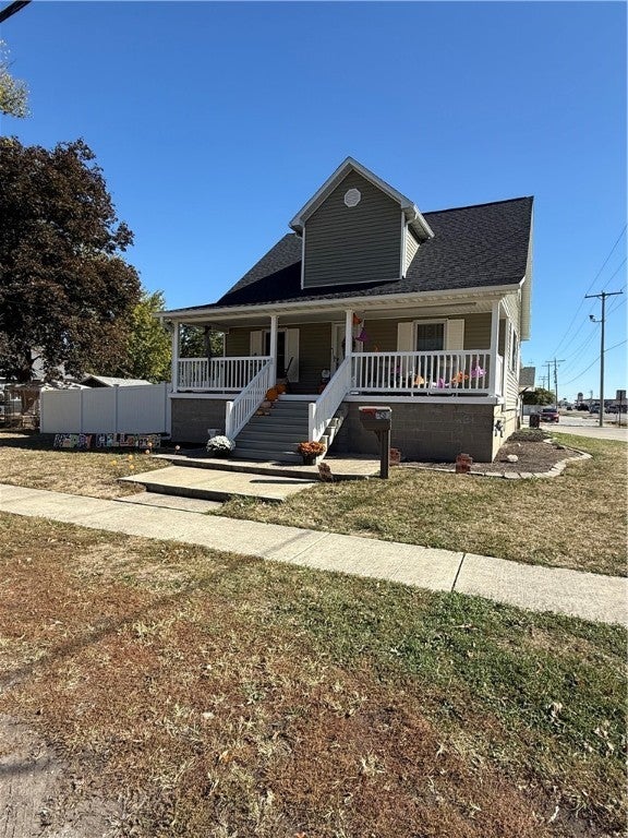 Beautifully appointed home with bright and spacious kitchen. Breakfast island with lots of space for the family plus a separate dining room for larger gatherings. Vinyl plank flooring throughout the lower level. Master bedroom has a 1/2 bath. Front bedroom/office has modern sliding barn door. Cozy electric fireplace in living room with blowers for heat. Lots of storage space including a walk-in closet at top of stairs. Ceiling fans in all rooms. The basement has lots of storage with shelving that stays and plenty of space for a workshop with outside access. There is also a partially finished family room in the basement. Big enough area for a ping pong table or pool table. Roof new in 2024. Large corner lot with fire pit for cool fall evenings and fencing on three sides. 24x24 Detached garage with circular drive. 10x12 storage shed. 29x8 covered front porch.