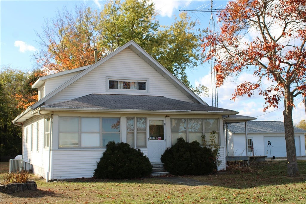 Charming Country Farm Home with Spacious Outbuildings! Discover the perfect blend of country charm and modern comfort in this inviting 3-bedroom, 1-bath farmhouse set on a peaceful rural property. The main floor offers a comfortable living room, formal dining area, and a bright eat-in kitchen complete with appliances. Also you will find a updated bathroom, laundry room and a bedroom on the main level. Upstairs offers two bedrooms, one being very large with a walk-in closet. Outside, enjoy the wide-open setting and relax on the enclosed large front porch or the open side porch. A detached 2-car garage provides ample room for vehicles and includes space for a workshop or extra storage. A 36' x 50' machine shed offers endless possibilities — from equipment storage to hobby space or a small business setup. Peaceful country living with room to grow! A new survey has been completed. There will be 1.22 acres sold with the property. Property taxes estimated with owner occupied zoned Residential would be approximately $2,505. Room sizes are approximate.